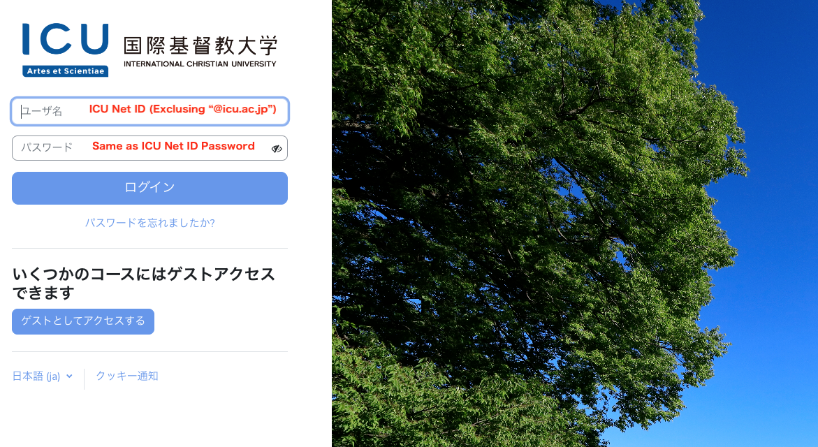1. Log in to ICU Moodle ICU Moodleログイン方法
