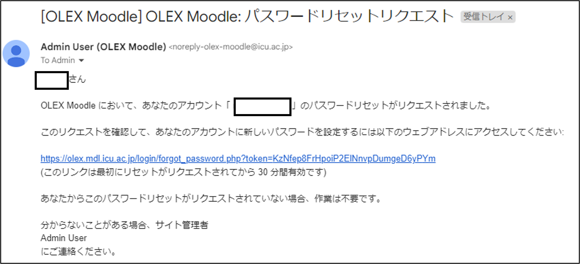3. 登録されているメールアドレスに「パスワードリセットリクエスト」のメールが届きます